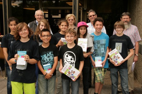 A l’occasion de la fête scolaire du 10 juillet 2012 à l’Ecole fondamentale d’Echternach, de beaux livres ont été offerts aux meilleurs élèves du cycle 4.2 des classes de Mmes Claudine Weber et Martine Lengler et de MM. Marc Hess et Gérard Bisenius :