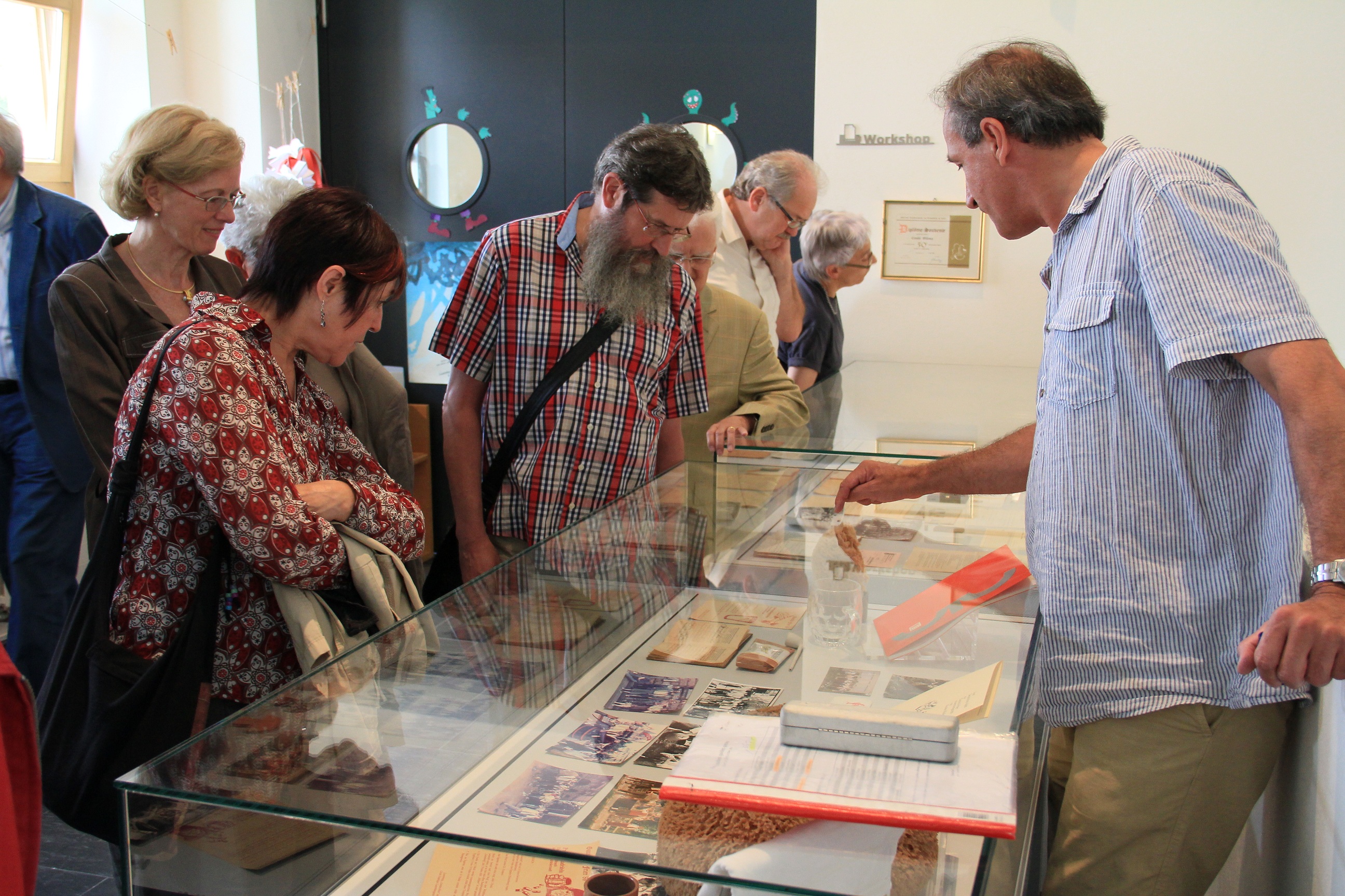 Deux presses à genouillère, d’innombrables casses et caractères, la légendaire « Linotype » (impression mécanique), deux presses typographiques à vapeur, cinq presses à platine, des découpeuses de carton et des cousoirs pour la reliure forment le noyau de la collection. Un aspect très original est le bruitage mélodieux des machines. Papier, couleur, typographie et matériaux sont thématisés par le biais d’objets concrets dans des vitrines ; la vielle tradition du « Gautschen » est ainsi montrée par le biais d’échantillons (« Gautschbütte ») et de photographies.